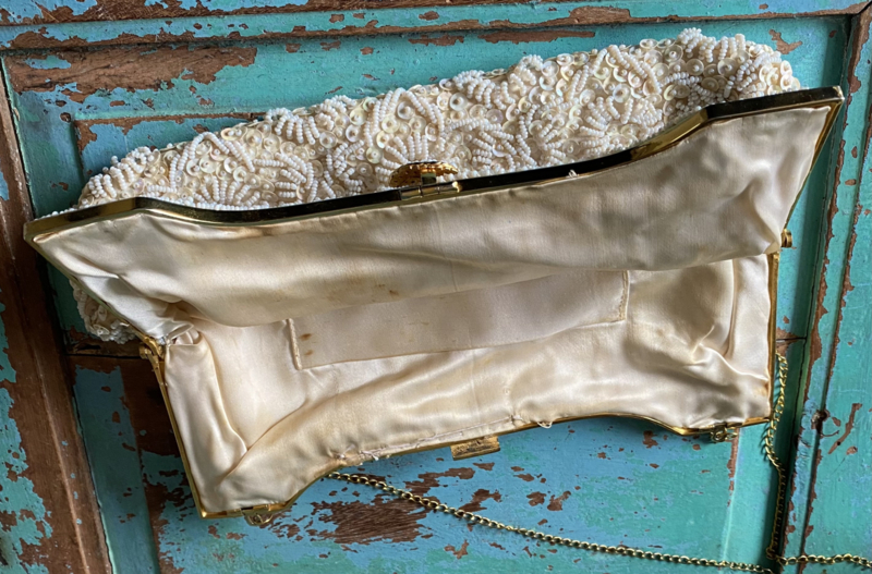 Oude Sarné kralen tas, in goede conditie, mooie sluiting, lange ketting