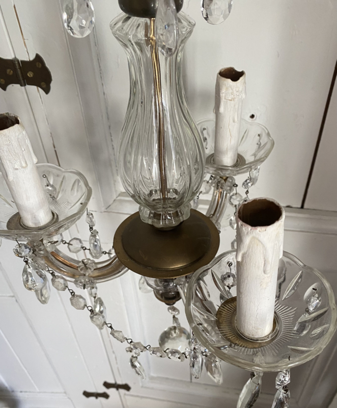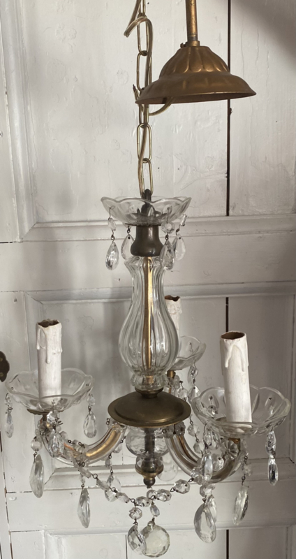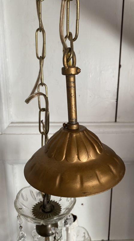 Oude "compacte" kroonluchter, compleet, incl plafondkapje van koper