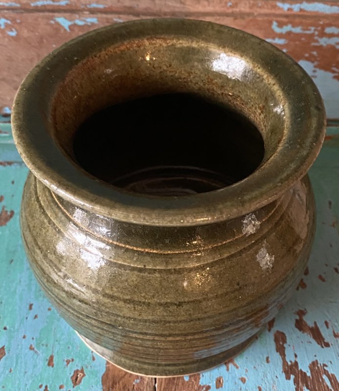 Groene aardewerken geglazuurde vaas