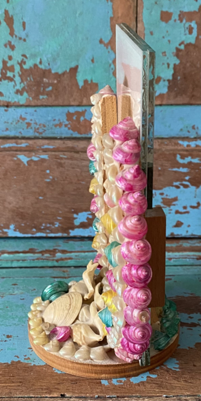 Jaren 50 schelpen fotolijstje, de foto zit tussen 2 glasplaatjes