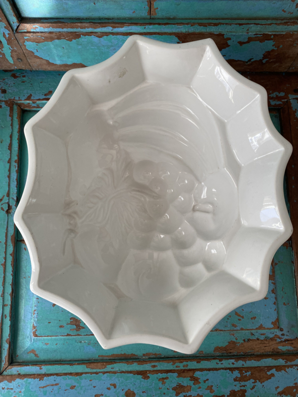 Hoge oude Engelse puddingvorm met druiventros