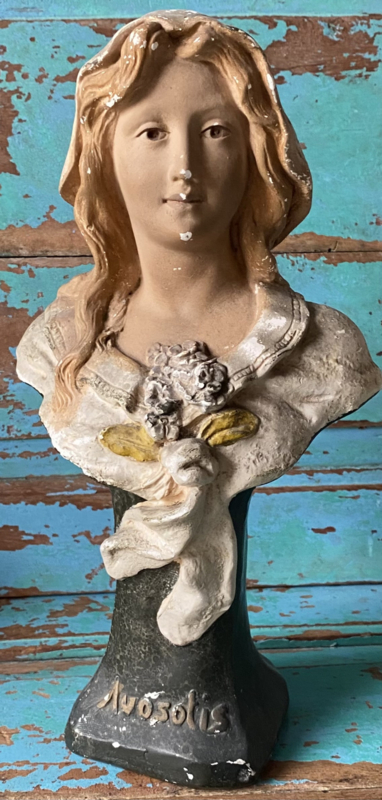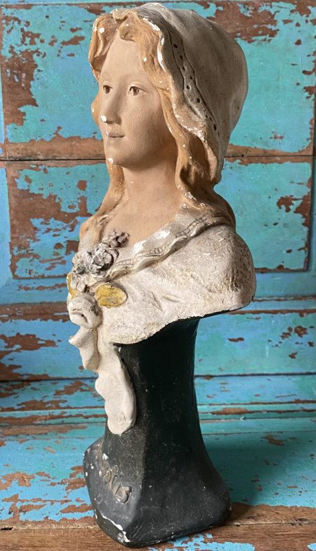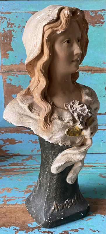 Oude buste, Art Nouveau, gips, beschilderd, hoog: 30,5cm