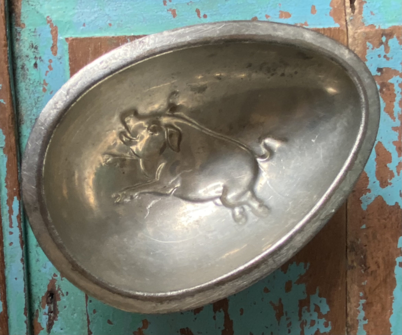 Oude halve paaseivorm, vrolijk varkentje, zware kwaliteit