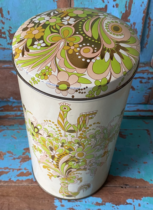 Vintage beschuitbus in mooie kleuren, sluit goed en mooi schoon vanbinnen