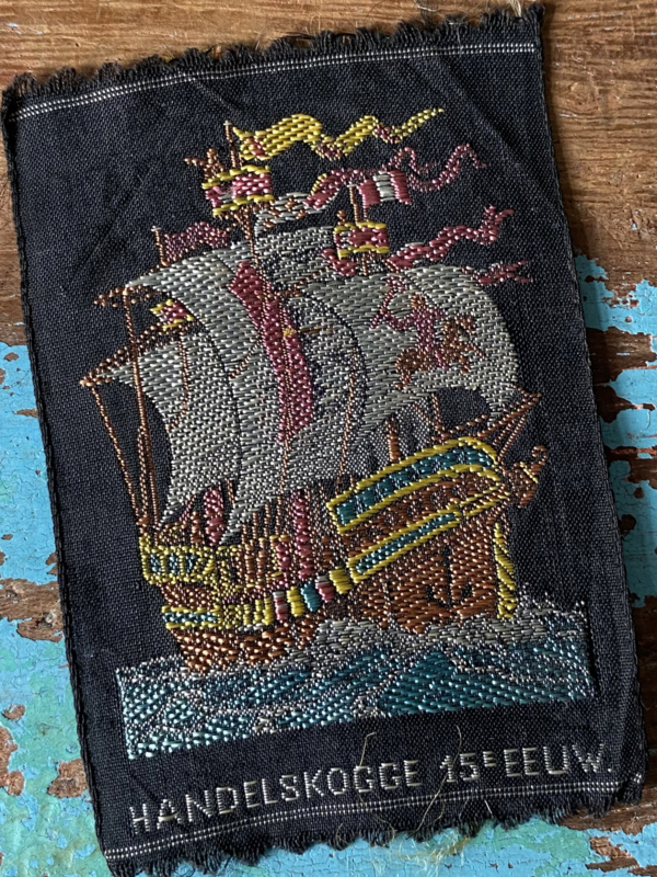 OverzichtKensitas vintage textielapplicatie, schip, zijde, jaren 30
