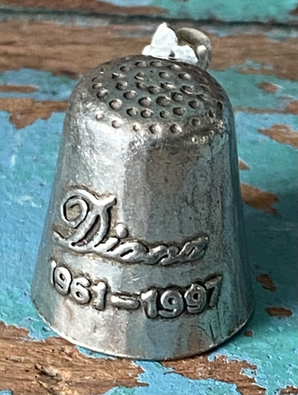 Tinnen herinneringsvingerhoed met roos, ter ere van Prinses Diana 1961-1997