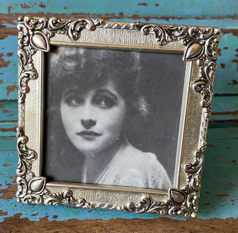 Zilverkleurig metalen oud lijstje, vierkant met mooie rand, om neer te zetten