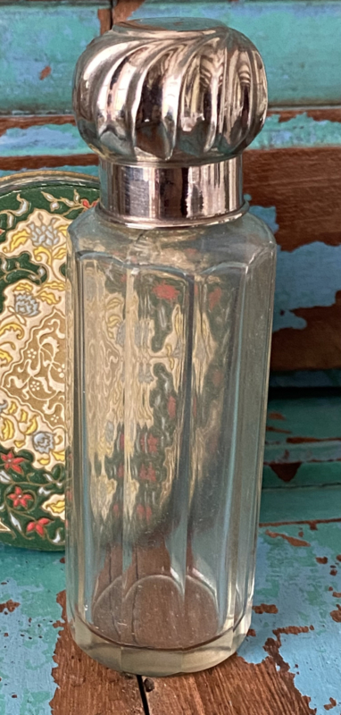 Vintage parfumfles met zilverkleurige metalen dop