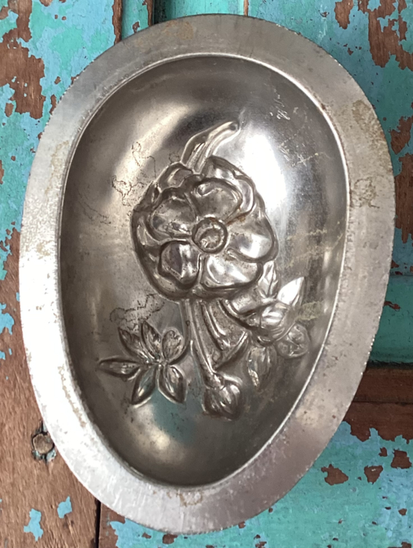 Oude halve metalen paaseivorm met bloemen, Arnold Kalmeijer, Den Haag