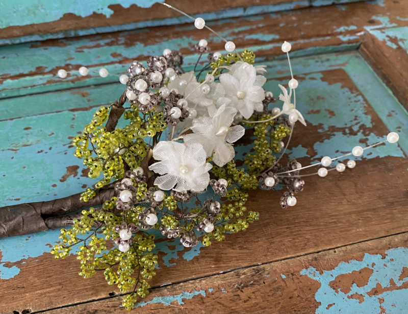 Oud kralenboeket, wit en groen