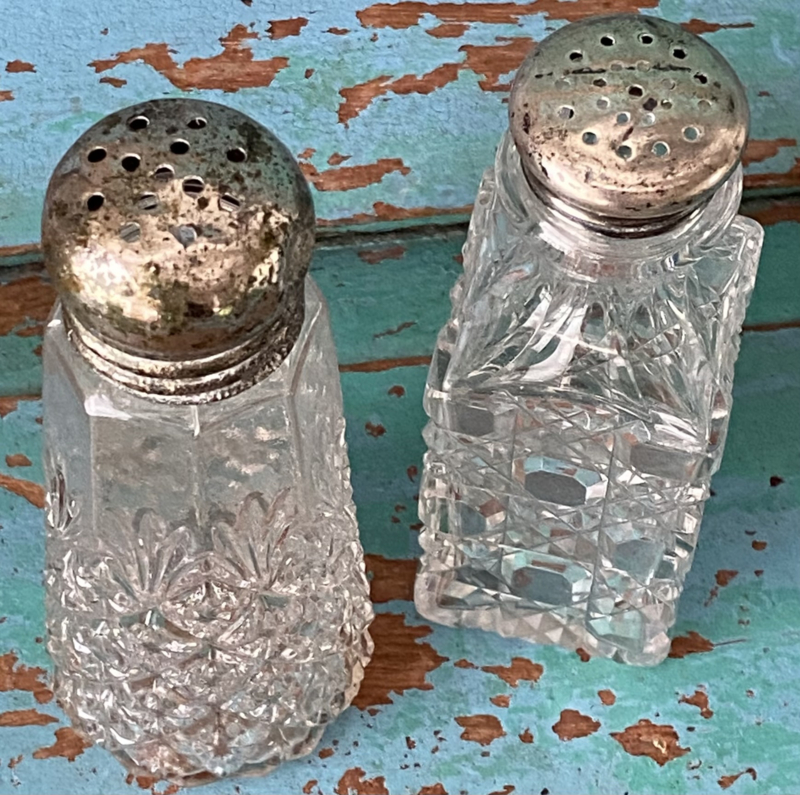 Twee oude strooiers van bewerkt glas