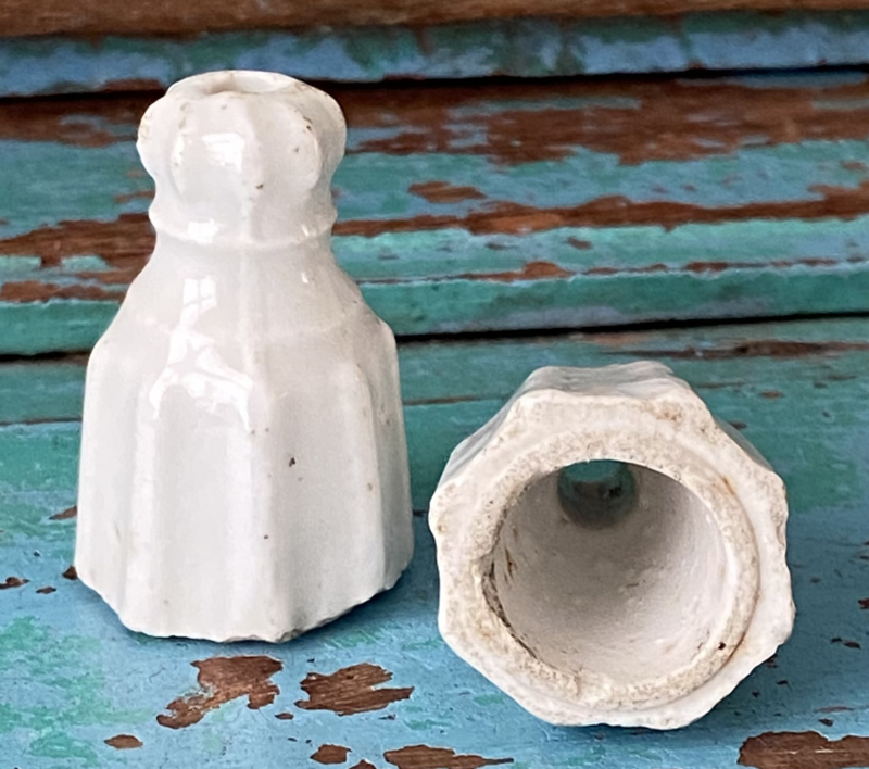 Twee porseleinen draperie koord gewichten