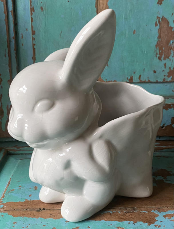 Porseleinen konijn met paaseierenmand