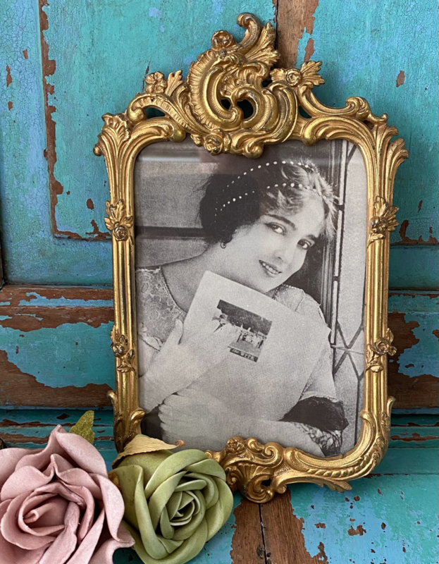 Frans krullen lijstjeOude Franse geel-koperen lijst met krullen en bloemetjes, om op te hangen