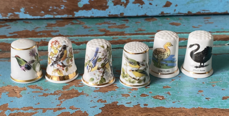 Porseleinen bloemen vingerhoedjesElf verschillende bloemen vingerhoedjes van dun porselein, mooie ranke vorm