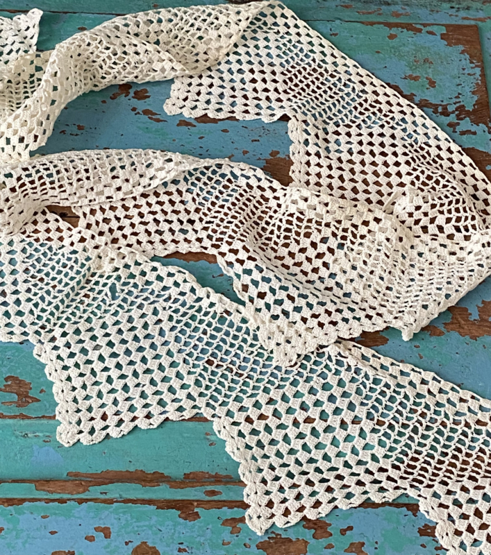 Fijn gehaakte brede rand (228cm)Oude fijntjes gehaakte brede rand