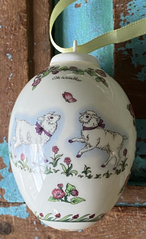 Hutschenreuter paaseiJaren 90, Hutschenreuter paasei met lammetjes, grootte van een kippenei ongeveer, leuk om aan een paastak te hangen