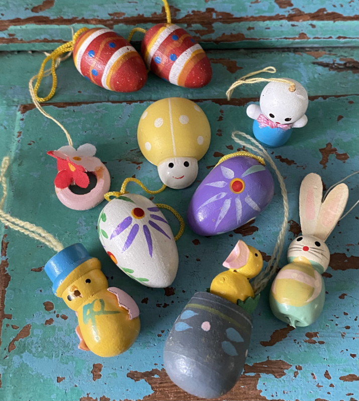 Houten paashangertjesKleine houten paashangertjes, leuk om aan een paastak te hangen, België