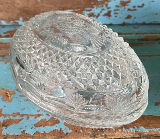Glazen paasei bonbonnièrePaasei bonbonnière van bewerkt glas, leuk om paaseitjes in te serveren