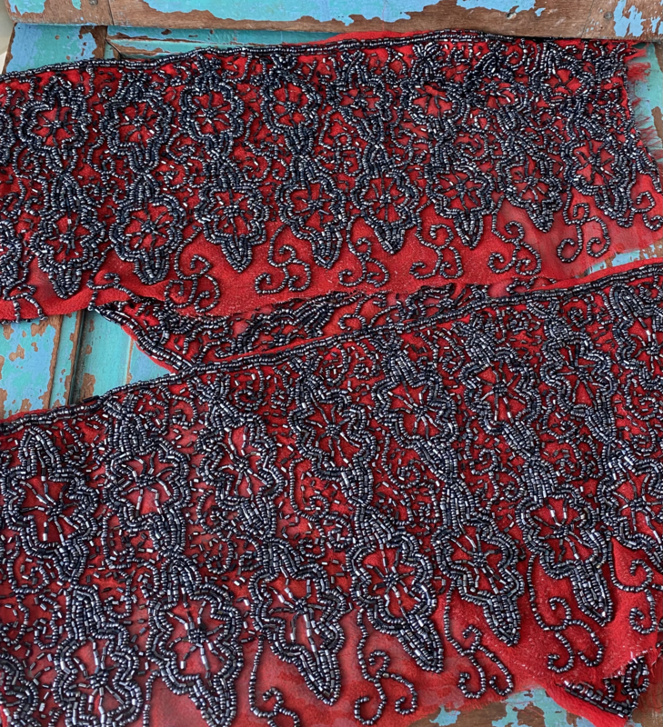 Brede kralenrandenDrie brede kralenranden, afkomstig van vintage kleding