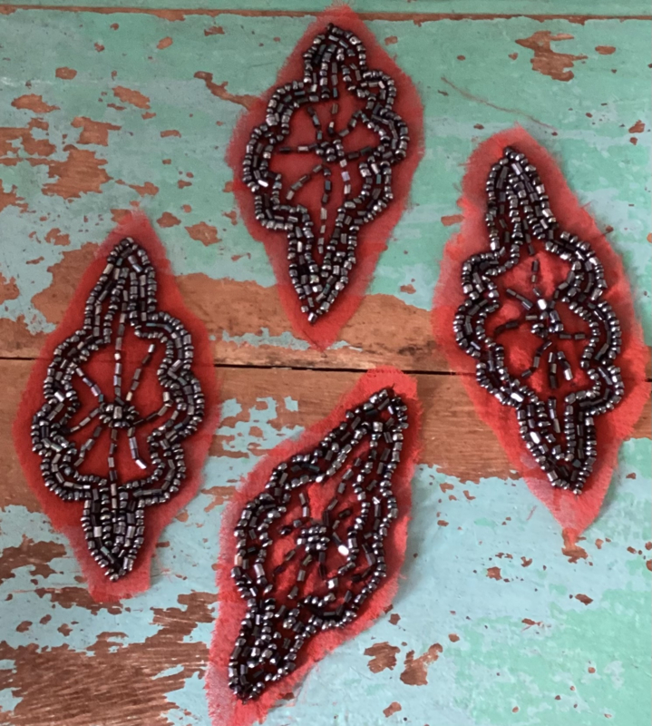 Kralen applicatiesAfkomstig van oud kledingstuk, kralen applicaties, prijs is voor vier stuks