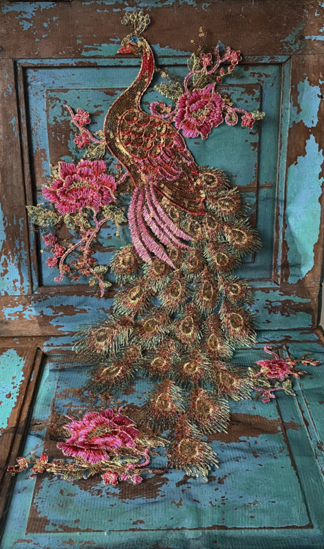 Grote pauw applicatieGeen vintage maar wel heel mooi deze grote applicatie op tule van een kleurrijke pauw
