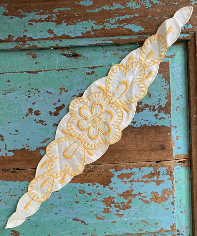 Kensitas textielapplicatieKensitas vintage textielapplicatie, Walcherse klederdracht , zijde, circa 1935