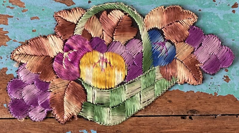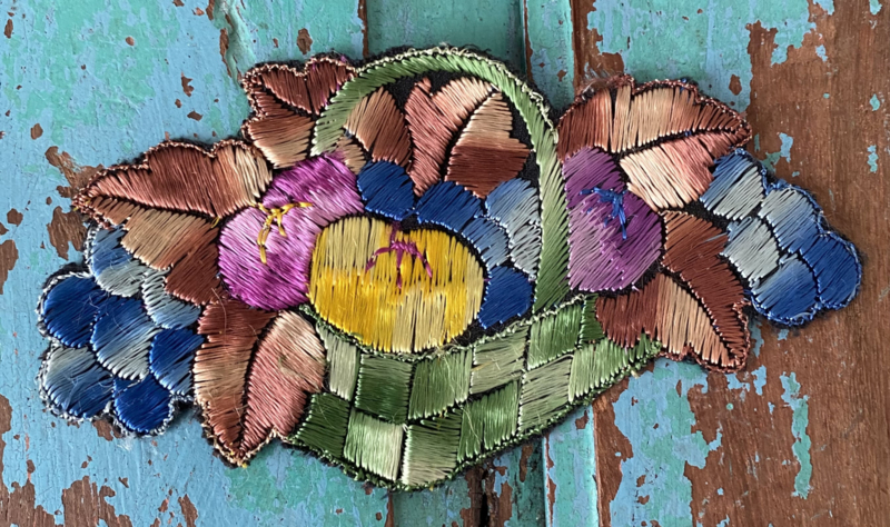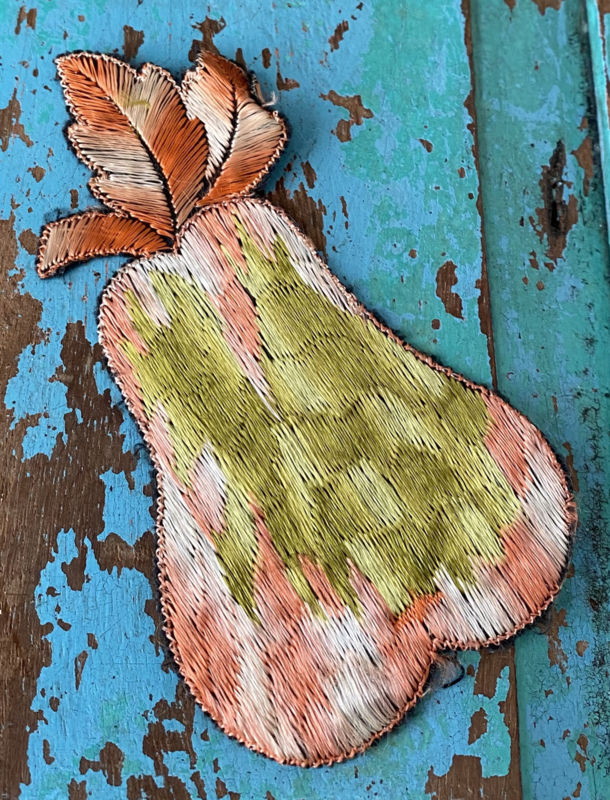 Thurmac applicatie “Fruitmand”Jaren 30 Turmac "Zijdje" textielapplicatie, fruitmandje